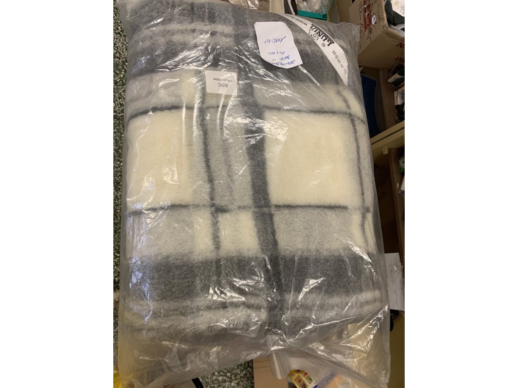 Deka je z jedné strany v přírodním smetanovém odstínu a z druhé strany s potiskem šedo-béžové káro, zakončená je elegantní lemovkou. Velikost deky je 140 x 200 cm. Značka Lunia.