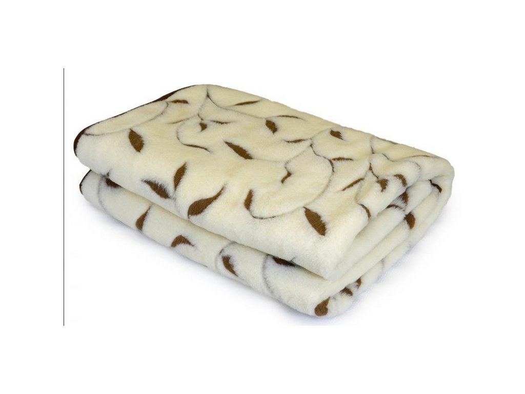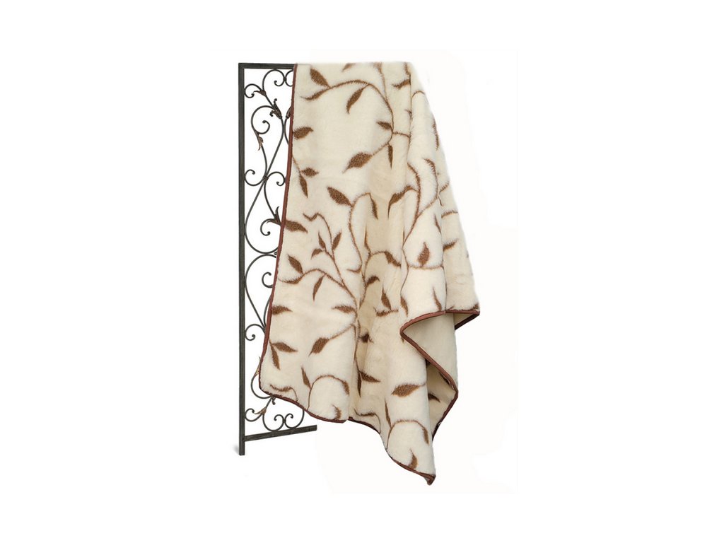 Deka je z obou stran v přírodním smetanovém odstínu s potiskem lístků, zakončená je elegantní lemovkou. Velikost deky je 140 x 200 cm.